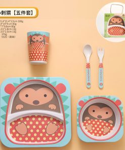 Set bát ăn dặm 5 chi tiết sợi tre. Hộp màu, Tiếng anh.