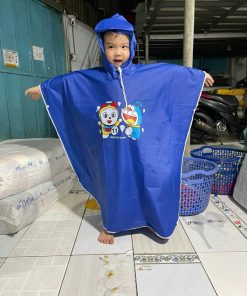 – Thiết kế áo mưa với màu sắc tươi sáng, được in hình Doraemon .
