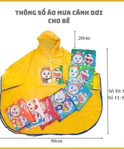– Thiết kế áo mưa với màu sắc tươi sáng, được in hình Doraemon .