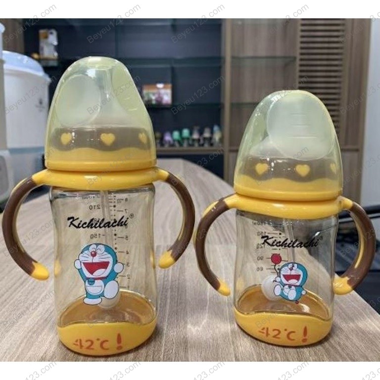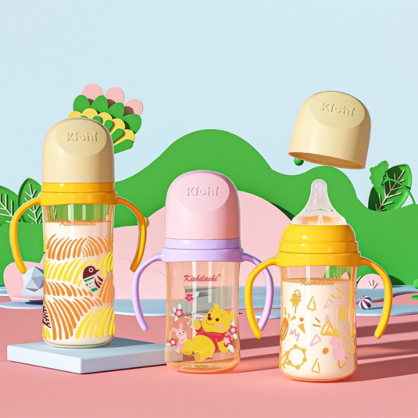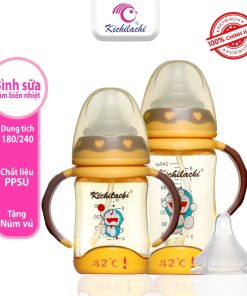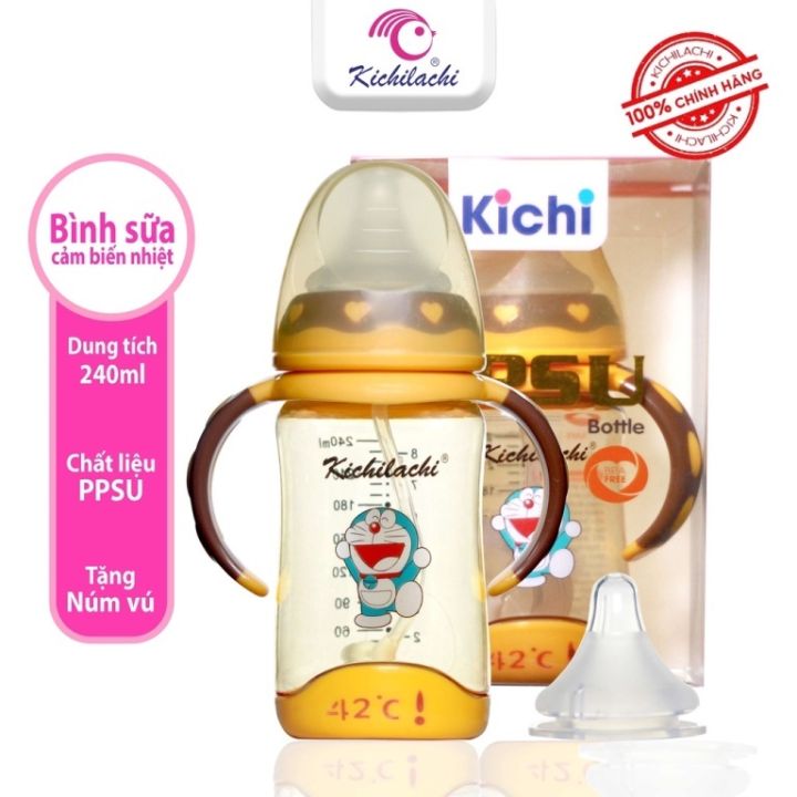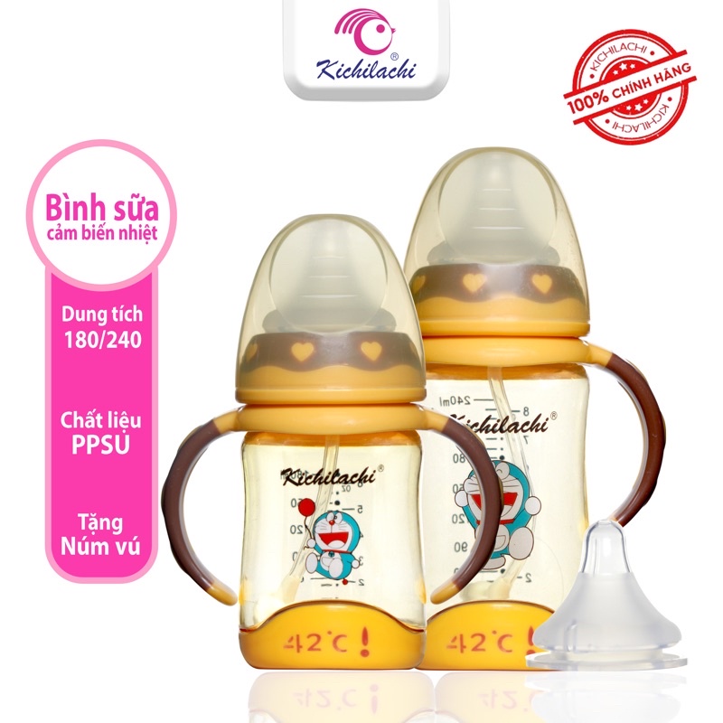Bình sữa KICHI PPSU cổ rộng cảm ứng nhiệt có quai cầm