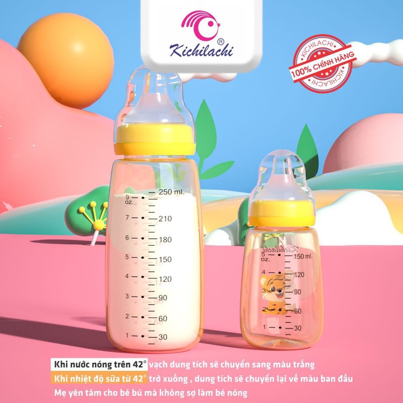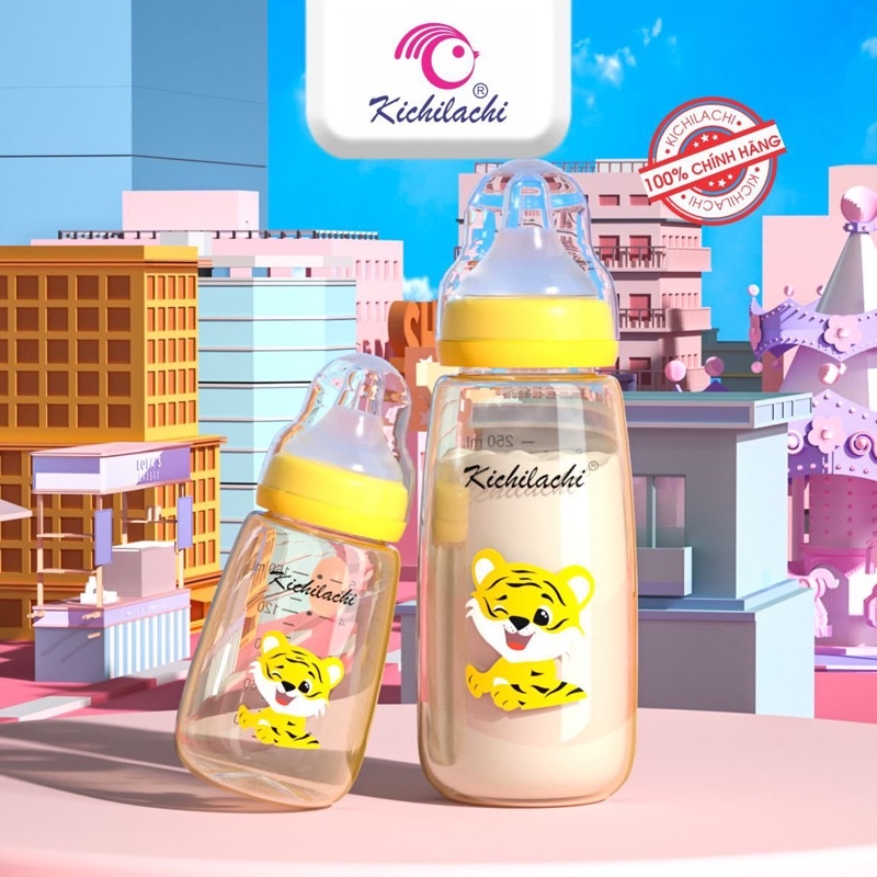 ⍣ Phù hợp cho trẻ từ sơ sinh trở lên Bình sữa sơ sinh PPSU cổ hẹp Kichilachi 80ml,150ml, 250ml núm ti siêu mềm chống sặc và đầy hơi cho bé