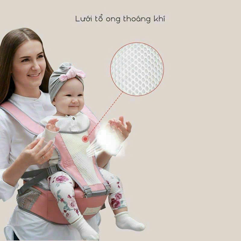 Đai Địu Chống Gù Lưng Em Bé 4 Tư Thế Cho Trẻ Sơ Sinh, Đai Em Bé Đi Xe Máy, Có Đệm Ghế Ngồi Chất Liệu Vải Cotton, có hộp để đựng Địu ngồi em bé mềm mại, thoáng khí, thấm hút mồ hôi tốt.