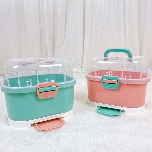⍣ Khay giá úp bình sữa có nắp đậy kiểu lật giúp đóng mở nắp dễ dàng, bảo quản vật dụng vệ sinh, sạch sẽ, tránh ẩm mốc, côn trùng.