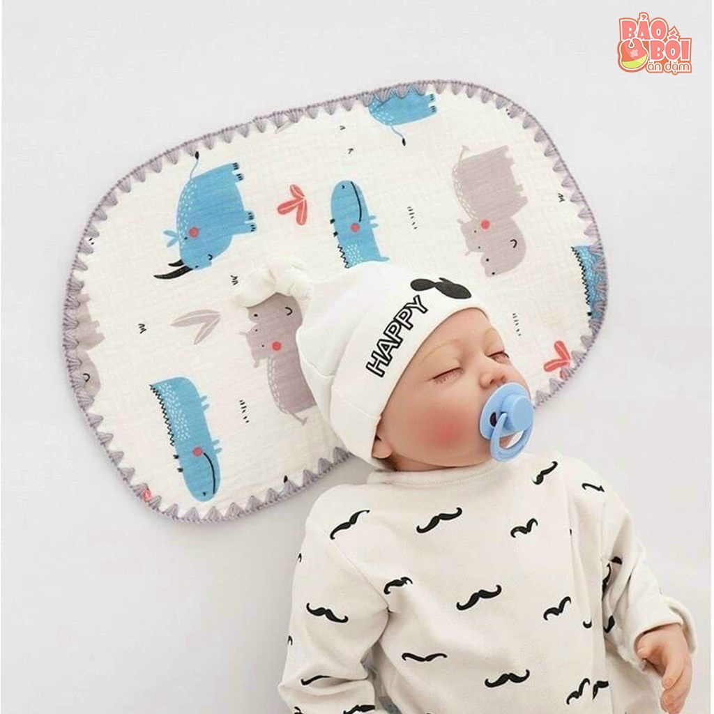 🌸Gối lót đầu vải xô 10 lớp mỏng mềm mại, độ cao phù hợp cho bé sơ sinh, giúp thẳng cột sống cho bé.