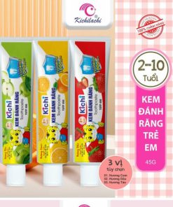 – Kem đánh răng Kichi thiết kế với thành phần tự nhiên phù hợp độ tuổi cho bé nên bé có thể nuốt được.