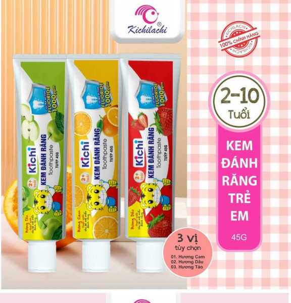 +Đặc biệt, Kem đánh răng cho bé Kichilachi có mùi hương của các loại trái cây mà bé nào cũng yếu thích như: dâu tây, cam và táo.Điều này khiến bé thêm hào hứng mỗi khi đánh răng, nhờ đó mà bé sẽ “hợp tác” hơn với mẹ, tự giác hơn trong việc đánh răng.