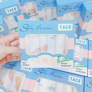 #khansoitreTaco[CHÍNH HÃNG] – Hộp 6 khăn sữa sợi tre 4 lớp cao cấp TACO, kích thước 30×30