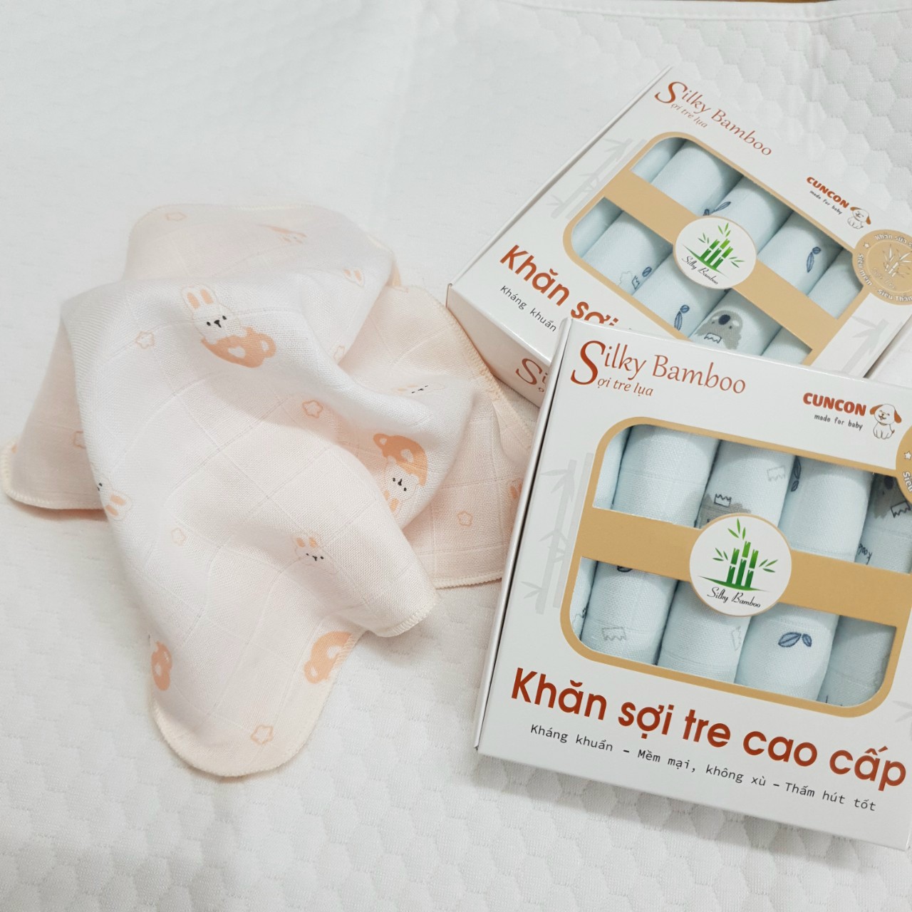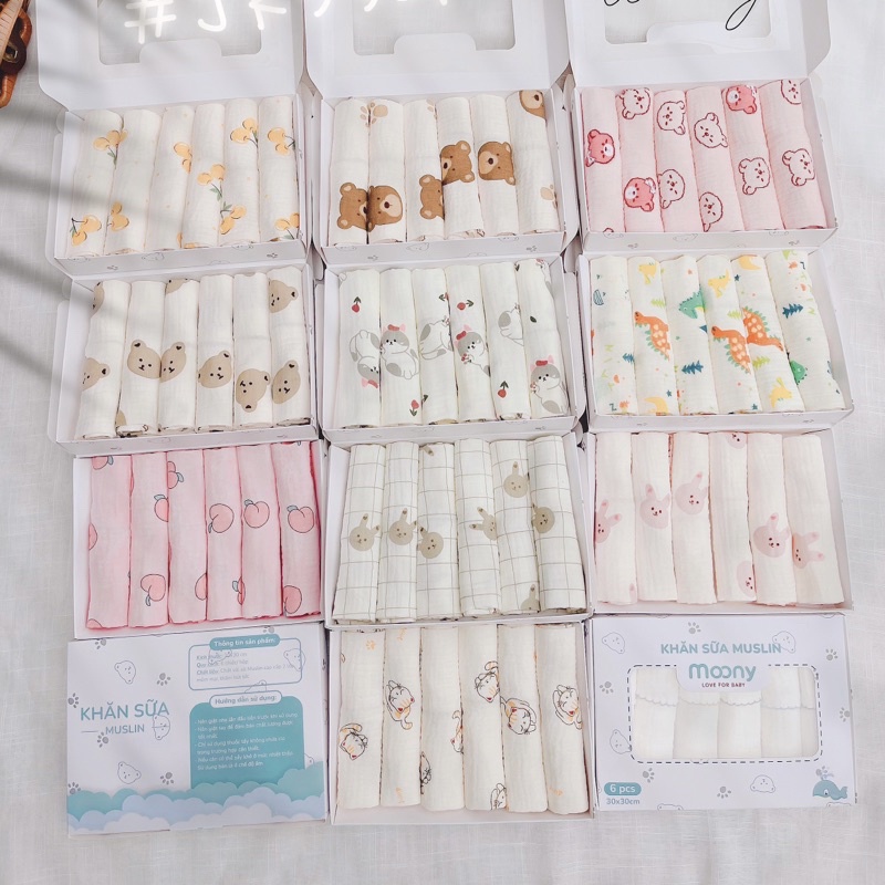 ➖ Khăn sữa sợi tre được đóng hộp theo set 5 khăn (khăn sữa)