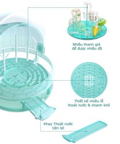 Khay có nhiều cộc để cắm bình sữa, ly cốc, giúp bình ly nhanh khô ráo, đặc biệt có quai xách thuận tiện việc di chuyển, mang theo đi xa.