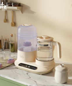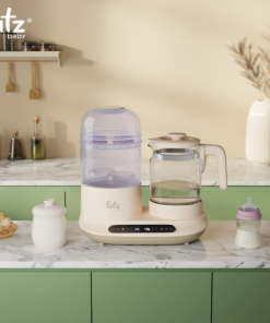 - Máy bên trái: Nắp tiệt trùng + khay đựng phụ kiện + buồng để bình sữa + giá để nồi + buồng đun: Nhựa PP; Nồi và nắp sứ: Sử; Đế đun: Thép không gỉ.