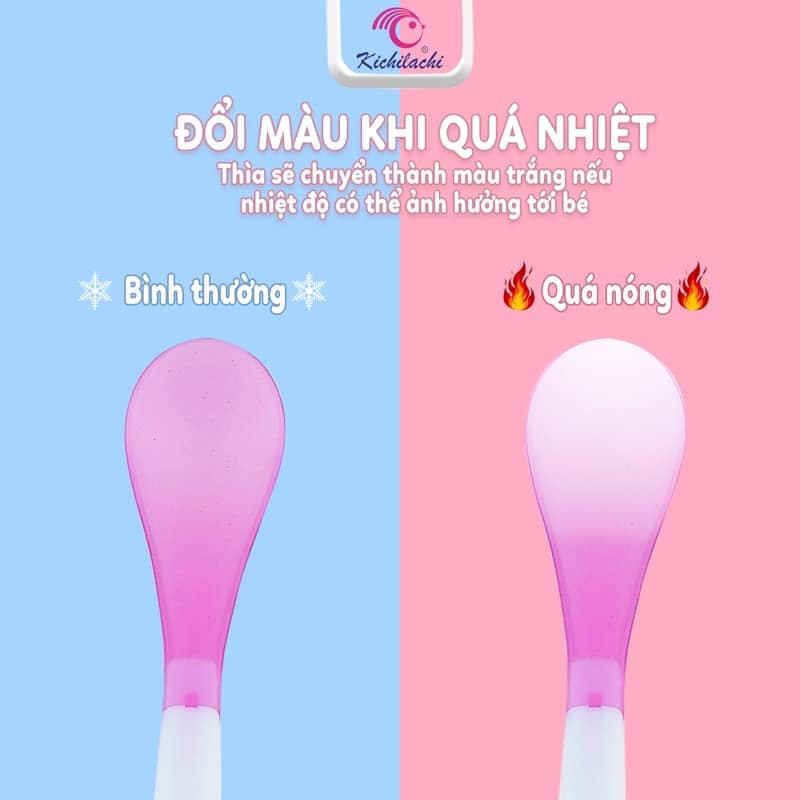 ✅ Thìa có chức năng báo nóng, giúp đo nhiệt độ thức ăn. Khi nhiệt độ trên 40°C, màu sắc của thìa sẽ tự động chuyển màu. Nhờ đó mà bố mẹ sẽ biết cách điều chỉnh nhiệt độ an toàn, nhất là khi pha sữa hay nước uống cho bé.