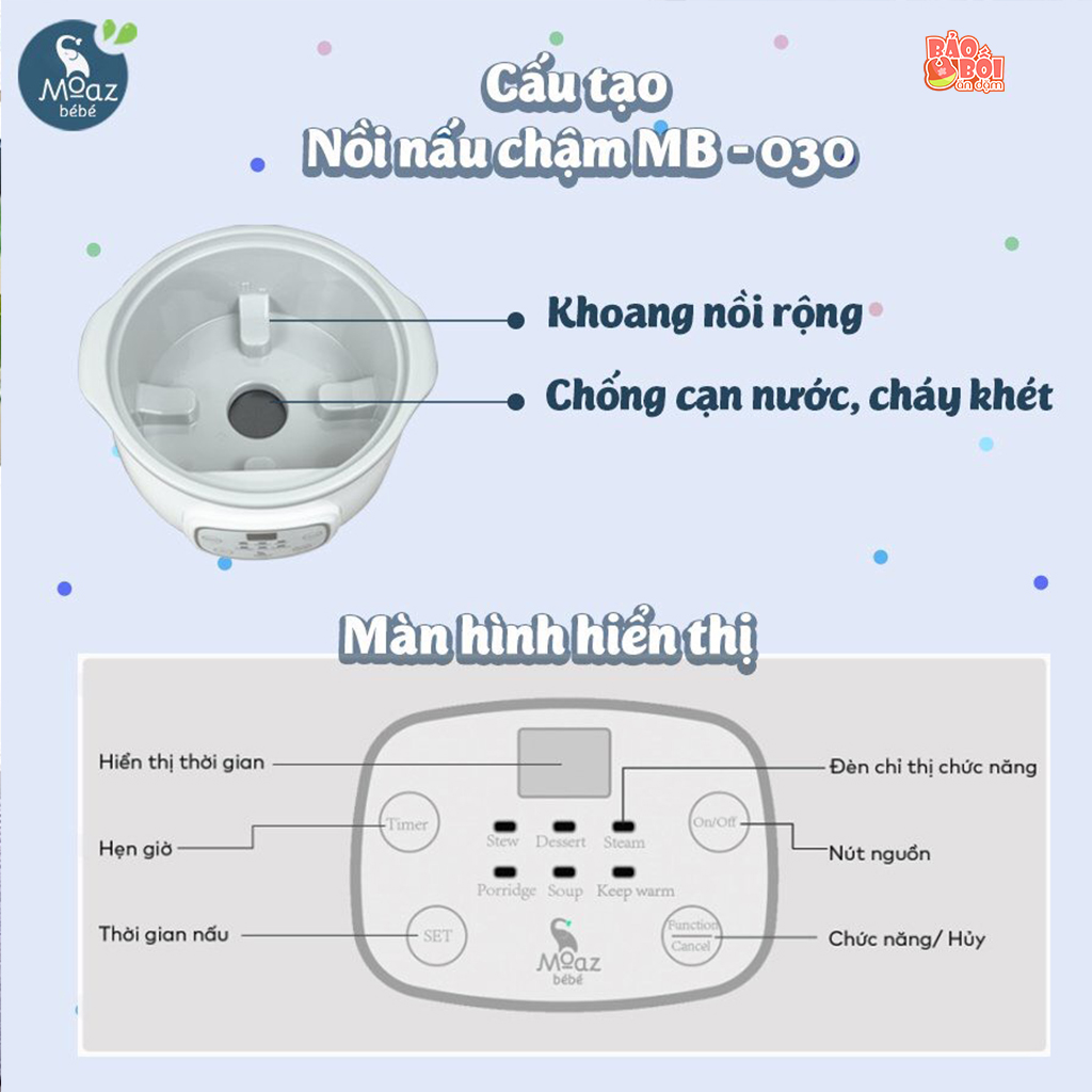 NỒI NẤU CHẬM MOAZ BEBE MB – 030 – CHÁO NGON NHUYỄN MỊN, GIÚP BÉ ĂN NGON