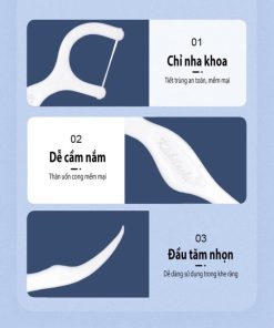 Tăm chỉ nha khoa sẽ bổ sung cho bàn chải đánh răng, làm sạch thức ăn, mảng bám ở cổ răng, kẽ răng… Bạn nên dùng tăm chỉ nha khoa mỗi ngày để lấy mảng bám ra khỏi bề mặt răng trước khi chúng có cơ hội hình thành vôi răng sẽ giúp bạn ngăn ngừa bệnh nha chu và hôi miệng.