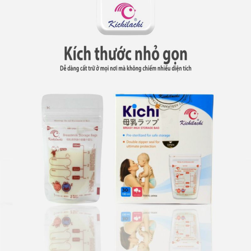 Túi trữ sữa cảm biến nhiệt 100ml Kichi