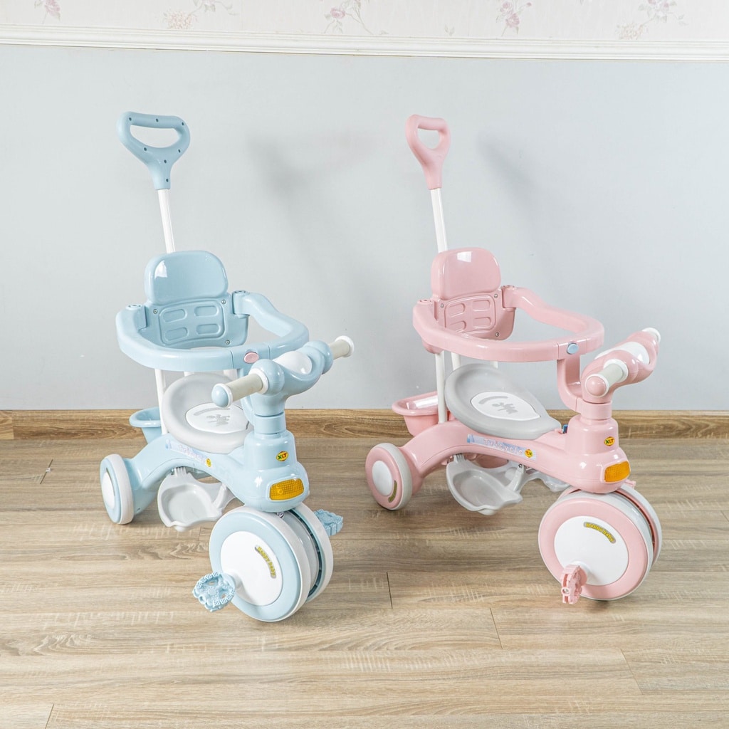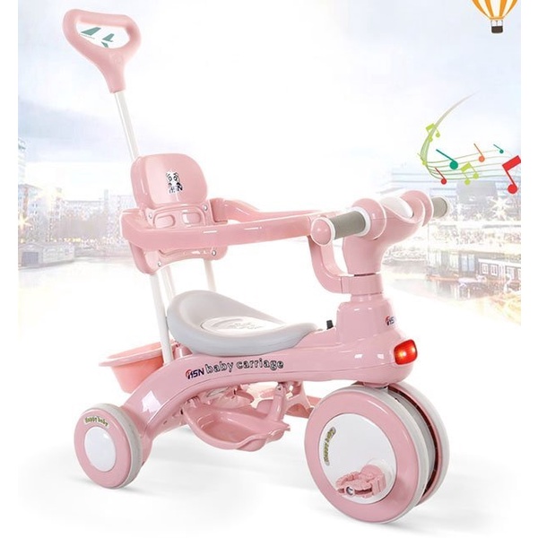 Xe đạp ba bánh, xe đẩy TE HAO BABY CARRIAGE, thiết kế hiện đại, chắc chắn, có đèn, có nhạc, khung bảo vệ an toàn và vô cùng dễ thương cho bé yêu Xe thiết kế vừa làm xe đạp, vừa làm xe chòi chân, lại có khung vòng và cần đẩy cho bố mẹ vô cùng đa năng và tiện lợi